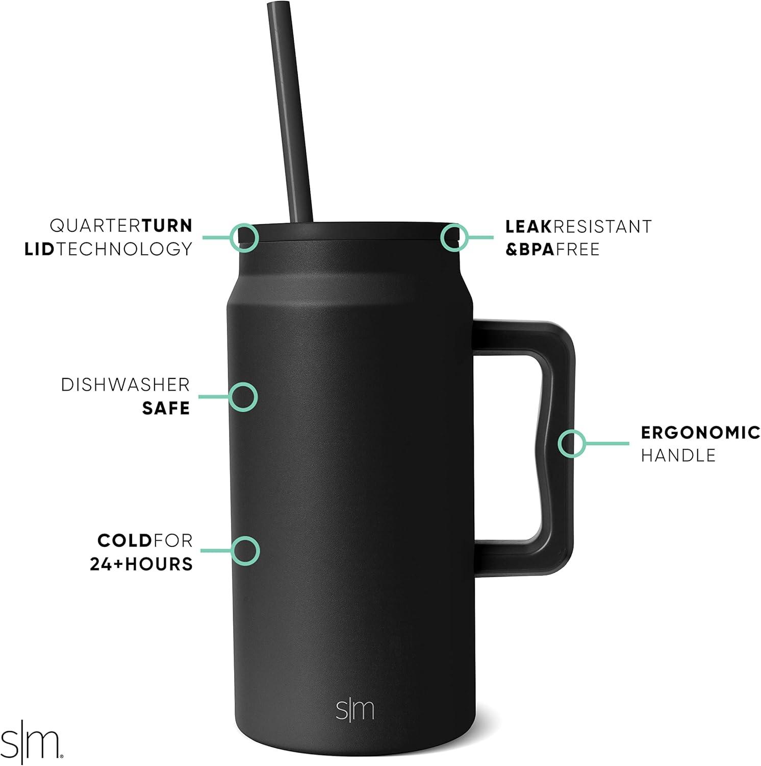 Simple Modern 50 oz Mug Tumbler with Handle and Straw Lid | Reusable Insulated Stainless Steel Large Water Bottle | Gifts for Women Men Him Her | Trek Collection | 50oz | Midnight Black(- Midnight Black)