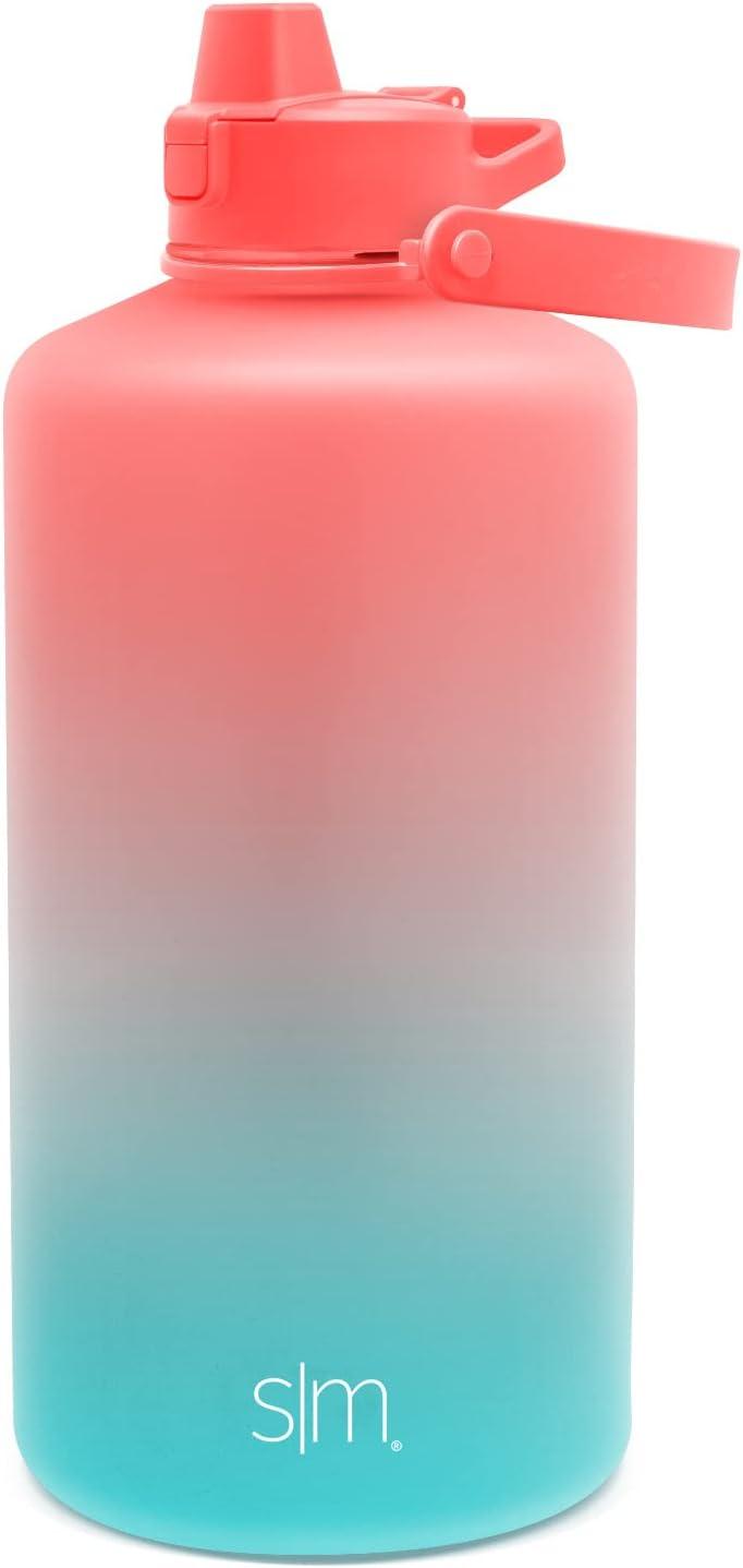Simple Modern Half Gallon 64 oz Water Bottle with Push Button Silicone Straw Lid & Motivational Measurement Marker | Large Reusable Tritan Plastic Water Jug | Summit Collection | Deep Ocean(Ombre: Pacific Dream)