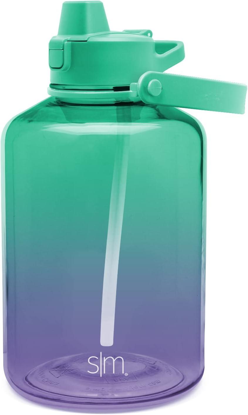Simple Modern Half Gallon 64 oz Water Bottle with Push Button Silicone Straw Lid & Motivational Measurement Marker | Large Reusable Tritan Plastic Water Jug | Summit Collection | Deep Ocean(Ombre: Sweet Taffy)