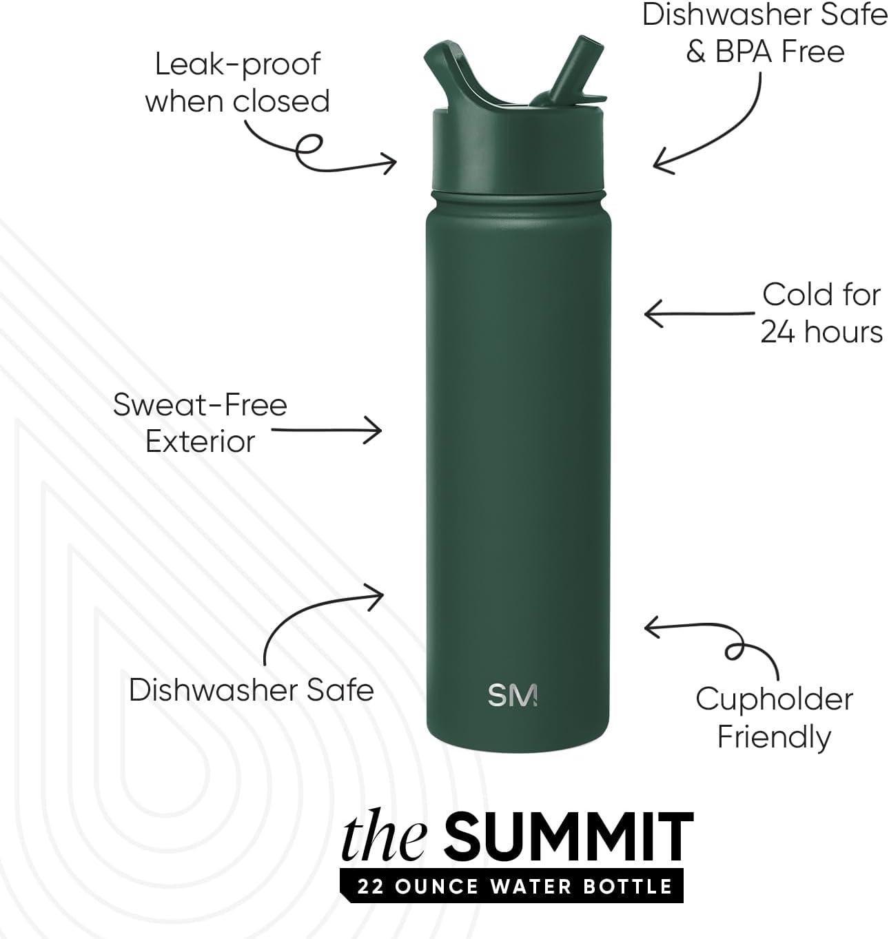 Simple Modern Water Bottle with Straw Lid | Vacuum Insulated Stainless Steel Metal | Reusable Leak Proof BPA-Free Cup for School | Summit Collection | 22oz, Buttercup(-Forest)